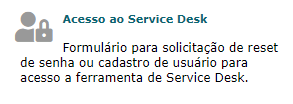 ConteúdoQuem pode acessar a ferramenta para solicitar atendimento? Os serviços somente poderão ser demandados por pessoas autorizadas pelo cliente e cadastradas no Prodest. O acesso a ferramenta https://servicedesk.prodest.es.gov.br será realizado com os mesmos "Usuário" e "Senha" do domínio Data Center que são utilizados para acessar o https://remotoapp.es.gov.br, DEVOPS, Painéis do BI, etc. Procure o gerente de TI do órgão, onde trabalha, para mais informações. IMPORTANTE: