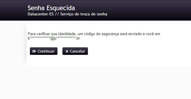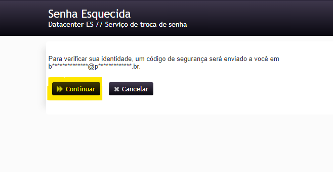 - Na próxima tela, clique em continuar para que um código de recuperação seja enviado ao seu e-mail cadastrado: